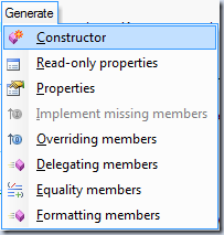If I select Constructor from the menu, I'll get a dialog in which I'll be able to specify constructor parameters, and automatically map them into local fields.