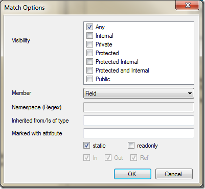 The dialog above will create the rule Any static not readonly field, which is exactly what I am looking for. Press OK, and close the Options dialog.