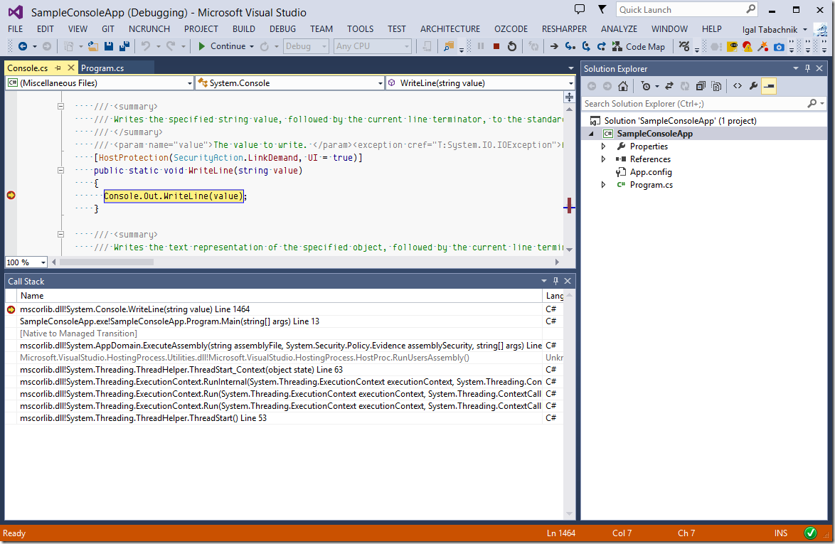 So let's suppose we want to put a breakpoint inside Console.WriteLine (or any other method in any other assembly). Here's what we need to do: