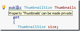- Finally, there is now a solution-wide analysis of unused public/protected methods, as well as visibility (works only when solution-wide analysis is on):