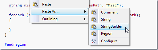 Being as most programmers are, well, lazy, I didn't want to do yet another find/replace session. I googled for the first thing that came to mind, "Smart Paste Visual Studio 2008". I found this great add-in called Smart Paster by Alex Papadimoulis (creator of TheDailyWTF), which adds a highly configurable "Paste As..." context menu: