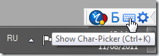 For convenience, there's also a toolbar that appears when the IME language is selected. If you don't know how to transliterate a particular character, there's a helpful character picker which you can use.