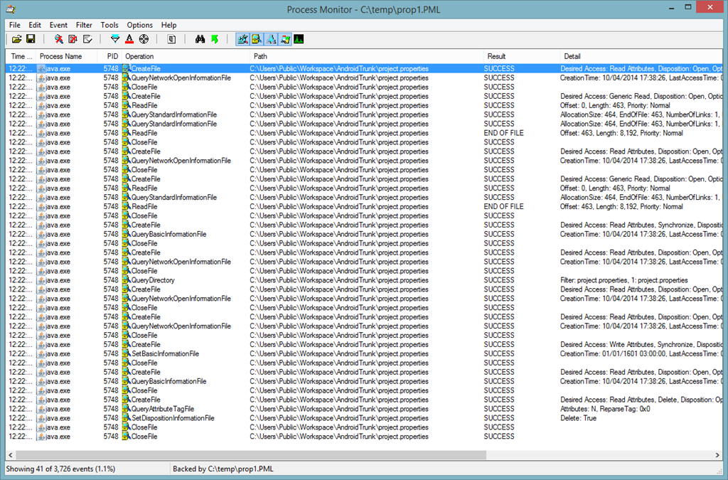 I was called over to see if I could help solve a strange issue - every time the build script (Ant) for the client's Android app ran - certain files that were modified by the build script (a .properties file, few others), were suddenly inaccessible to other people logging to the machine - only the user who initiated the build could still write to the files. Looking at the file permissions tab proved as much: only the current user and the Administrators group could access the file!